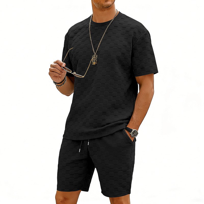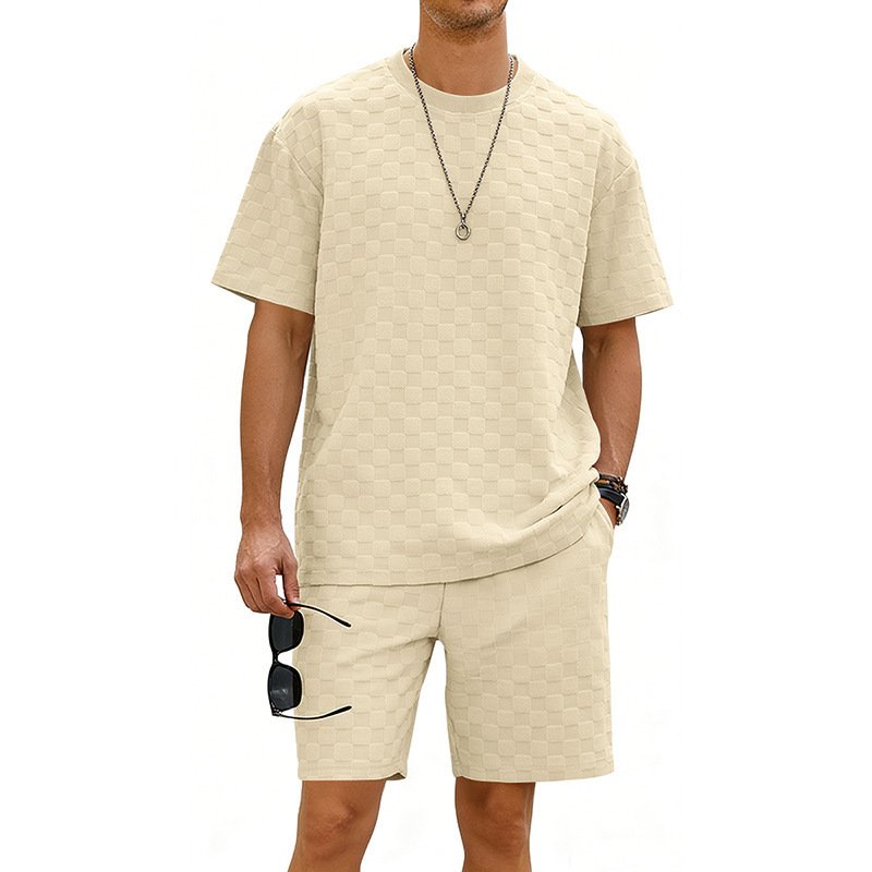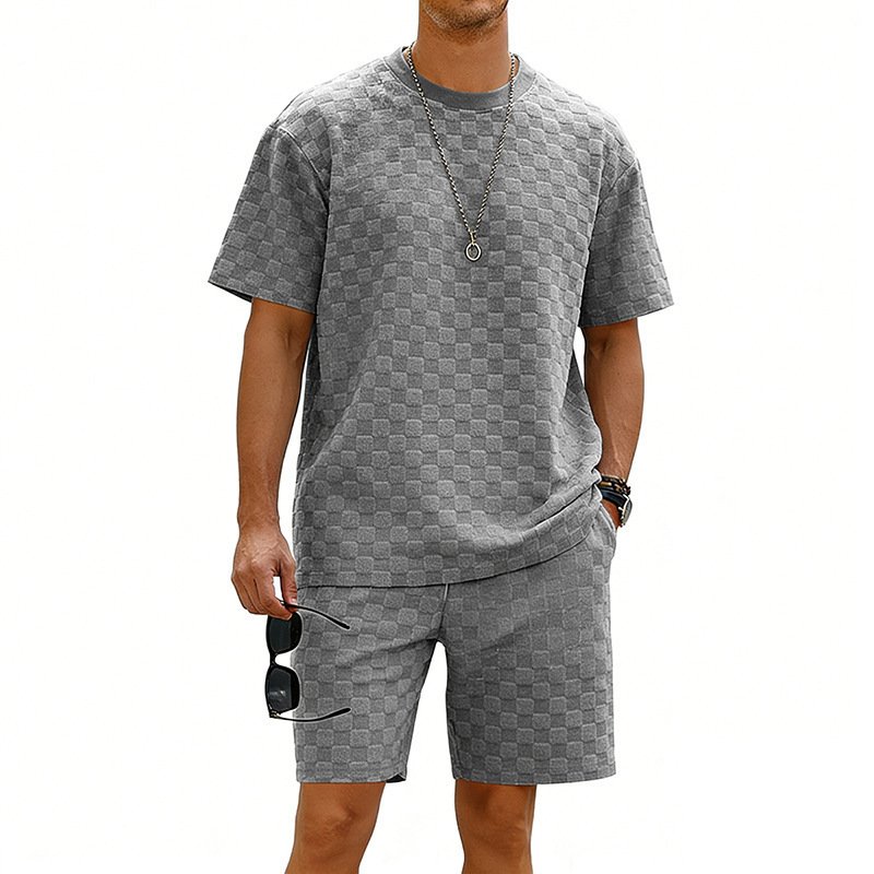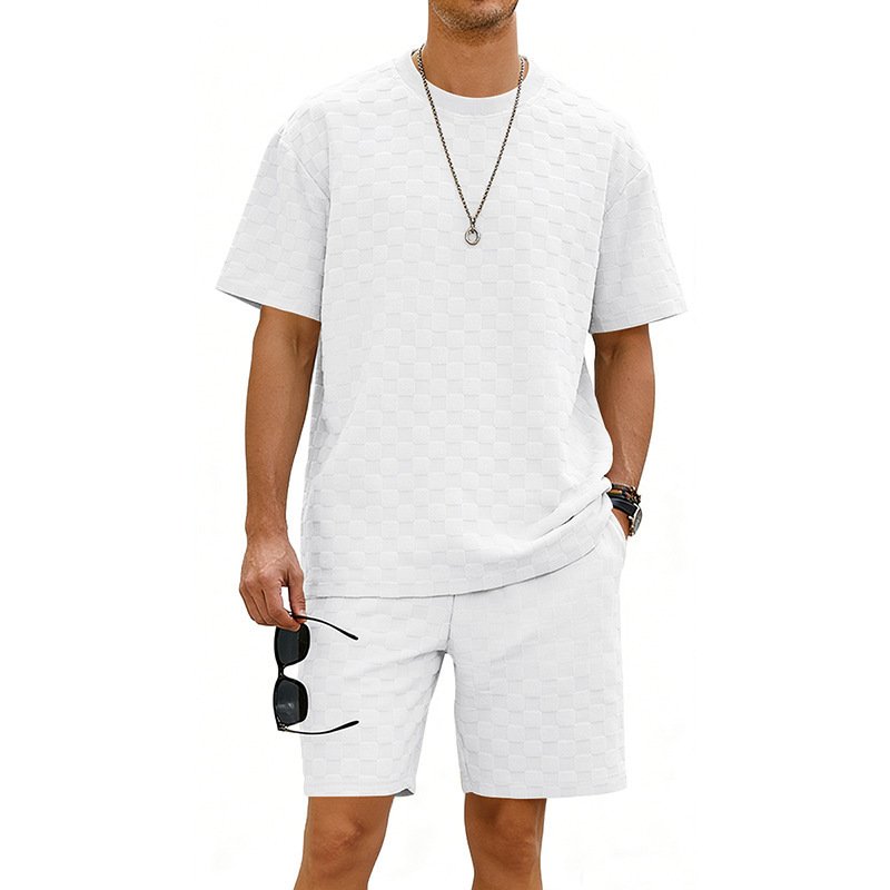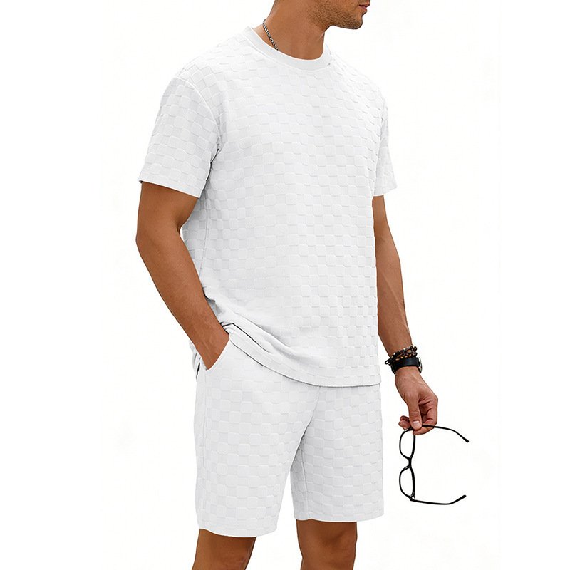 Checkered Mens Short-sleeve T-shirt And Casual Shorts Set