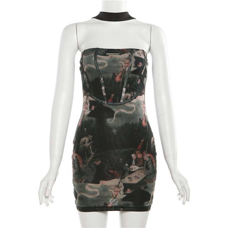 Figure-Hugging High-Waisted Fashionable Halterneck Dress For Women