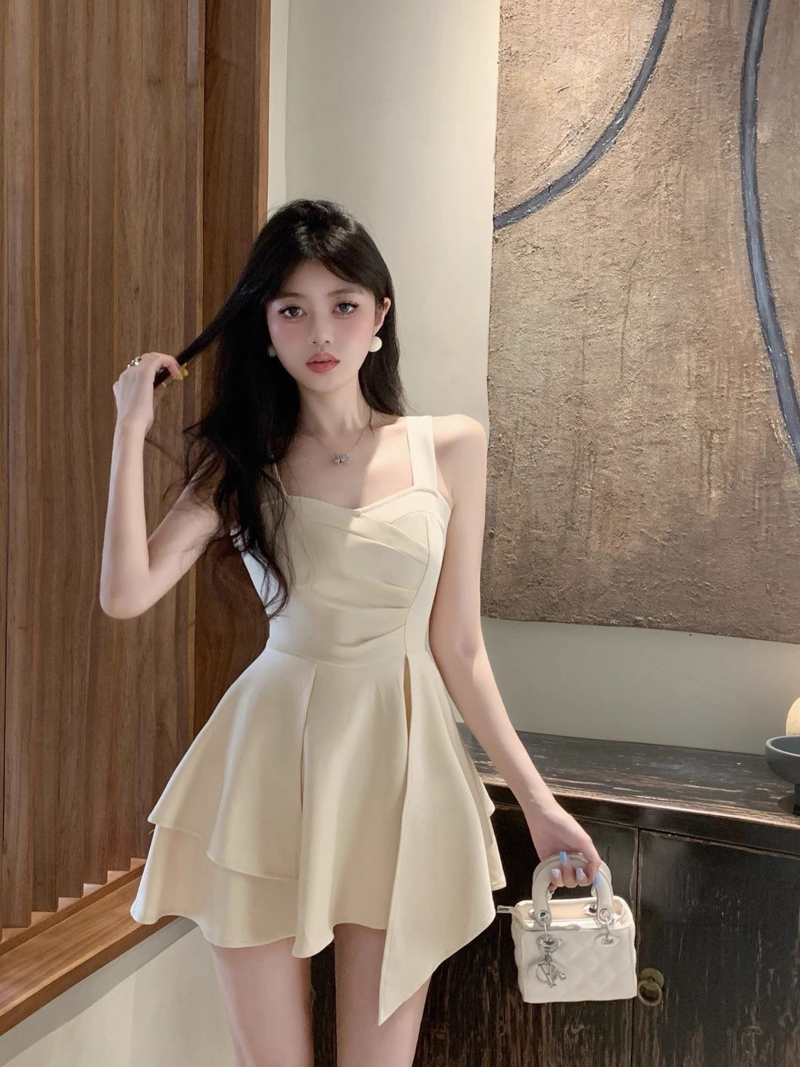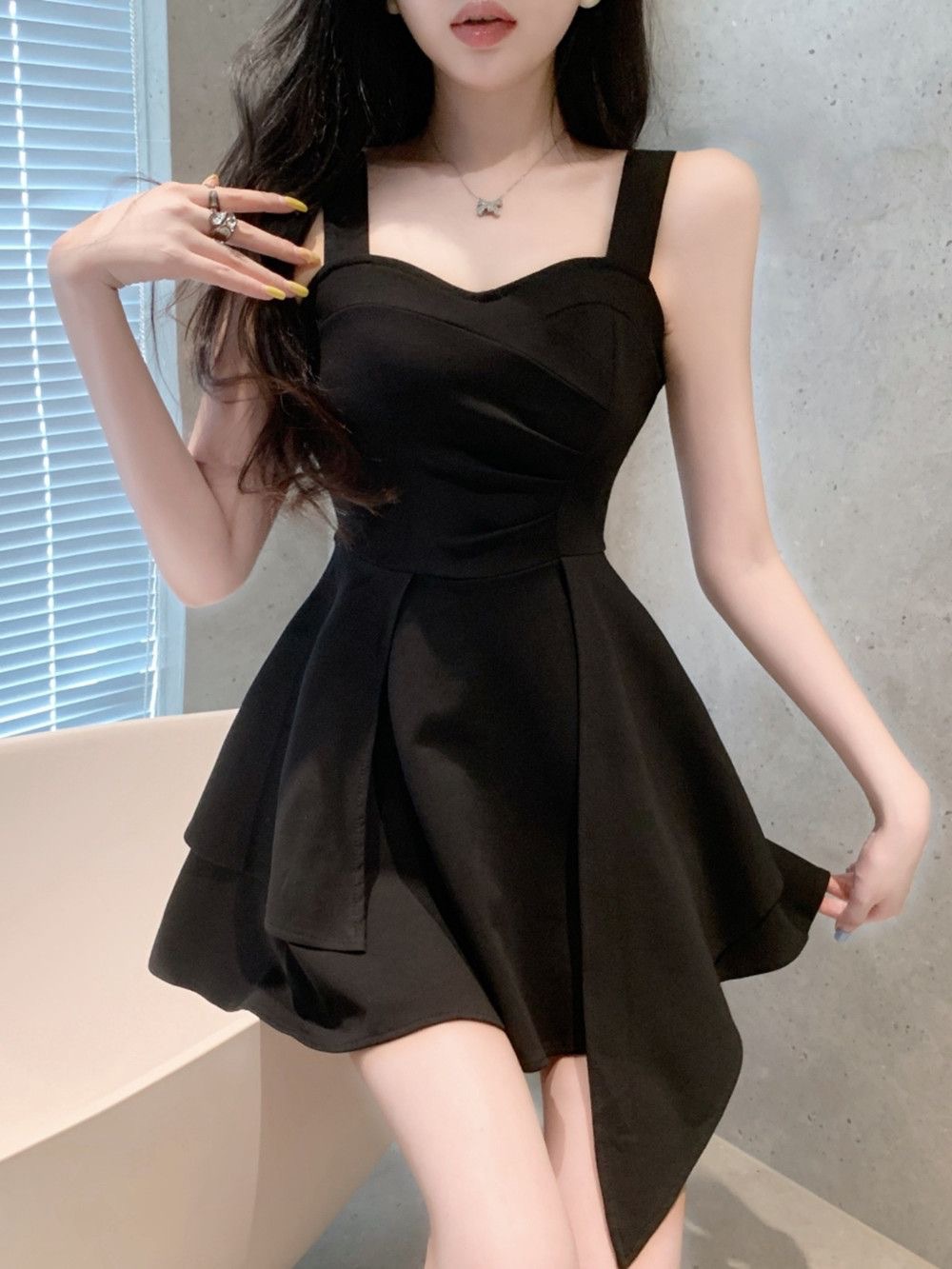 French-style Sweet And Spicy Chic Sexy Backless Strap Dress