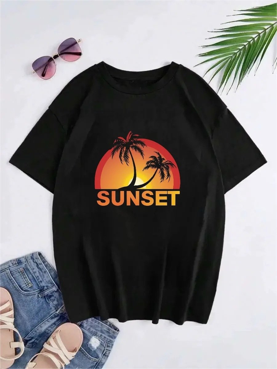 Hong Kong Style Sunset Pattern Printed Short-sleeved T-shirt