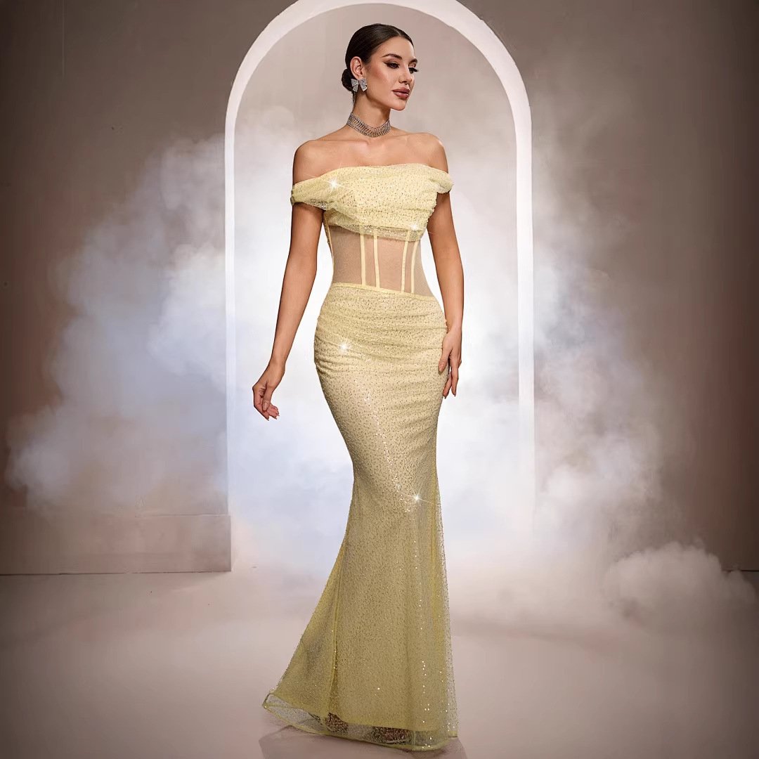 Sleeveless Off-the-shoulder Sequined Mermaid Evening Gown