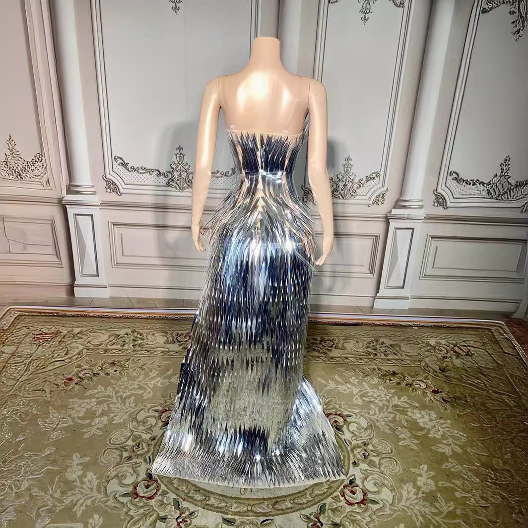 Stage Advanced Light Luxury Evening Dress Sequined Design Side Slit Tail Slim Temperament