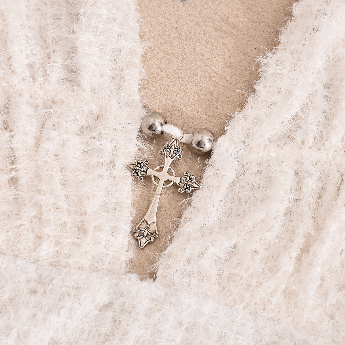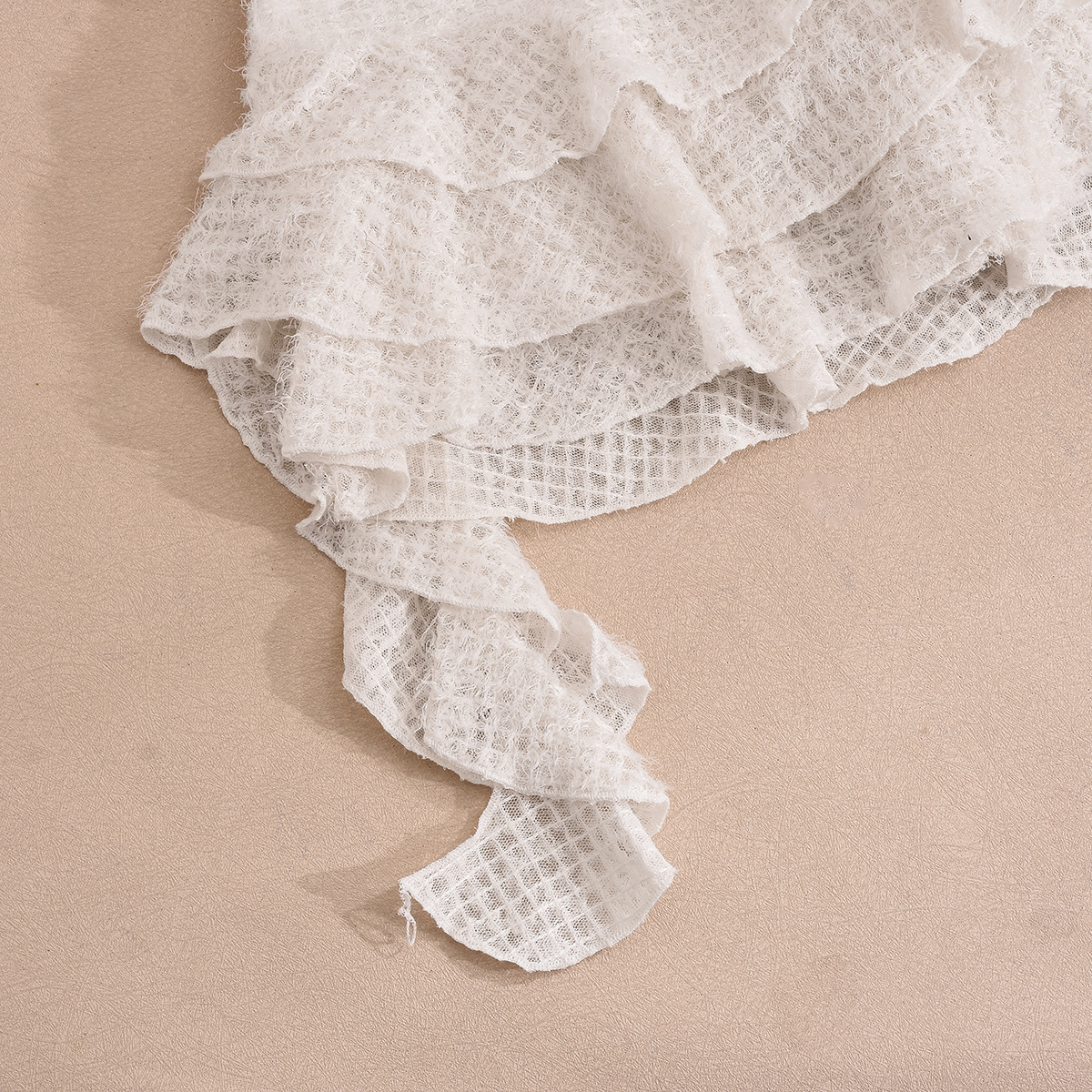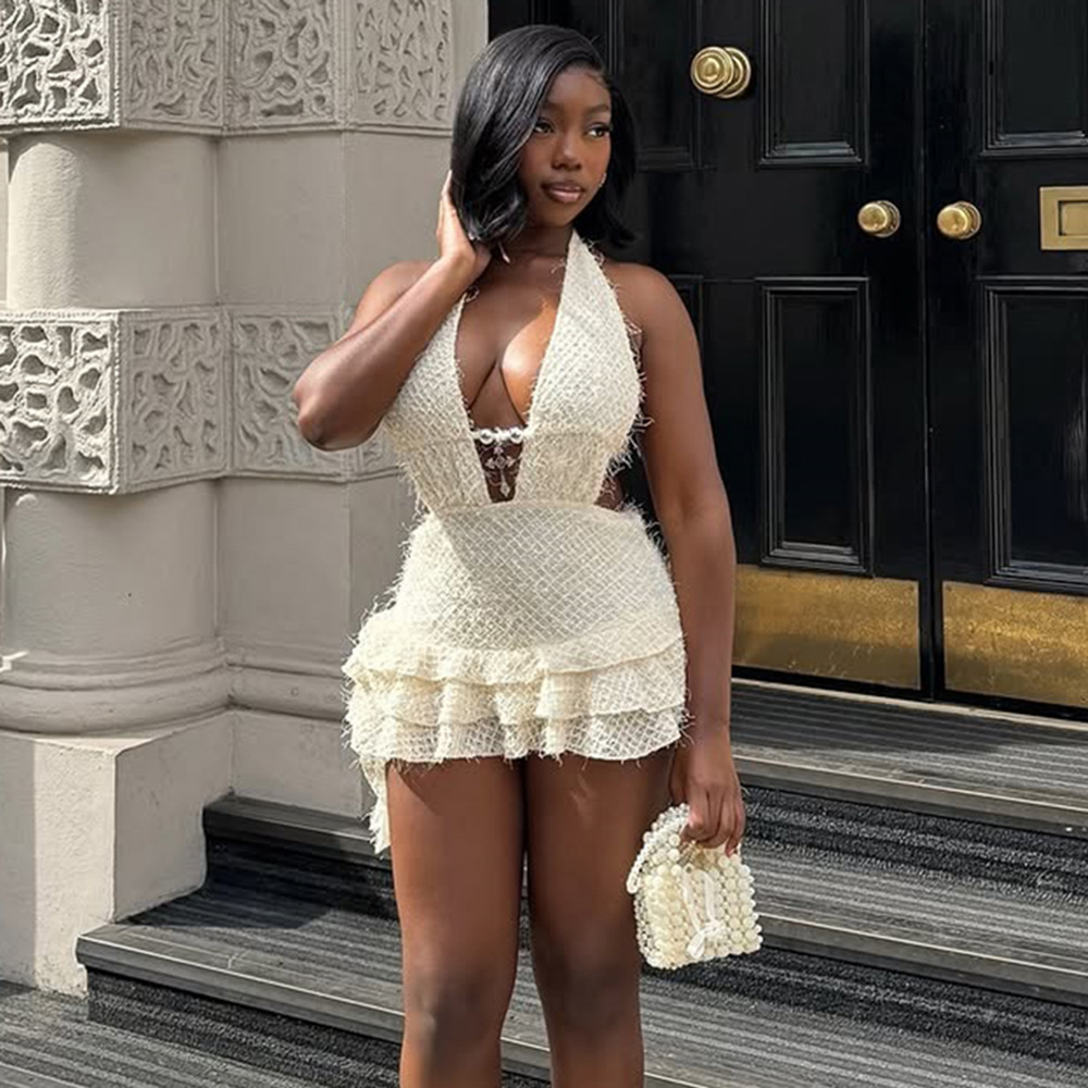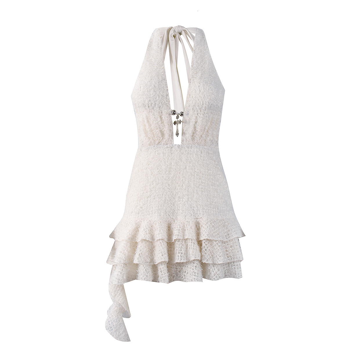 V-neck Hollow-out Pouf Skirt With Neck-tie Straps And A Backless Fine-fiber Mini Skirt