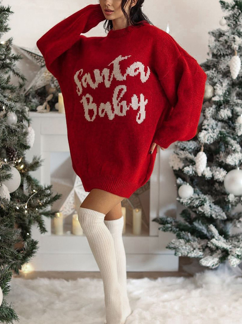 Women’s Long-sleeve Jacquard Knit Sweater Dress